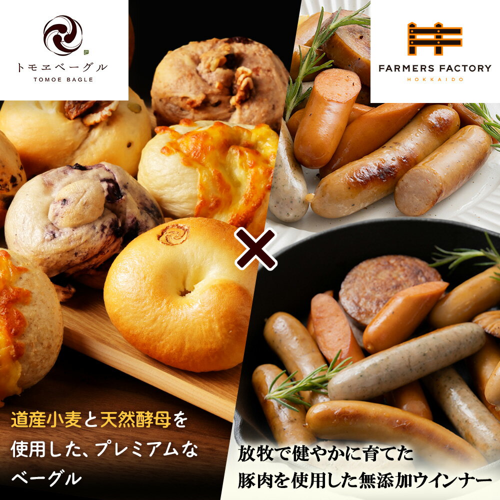 【ふるさと納税】「北海道産放牧豚 無添加ウインナーセット」とトモヱベーグル「北の麦輪」10個セット | 北海道産 放牧豚 ウインナー 無添加 無塩せき 和三盆 安心 安全 北の麦輪 ベーグル 詰め合わせ セット ヘルシー もっちり お取り寄せ 北海道 恵庭市 恵庭【C99029】