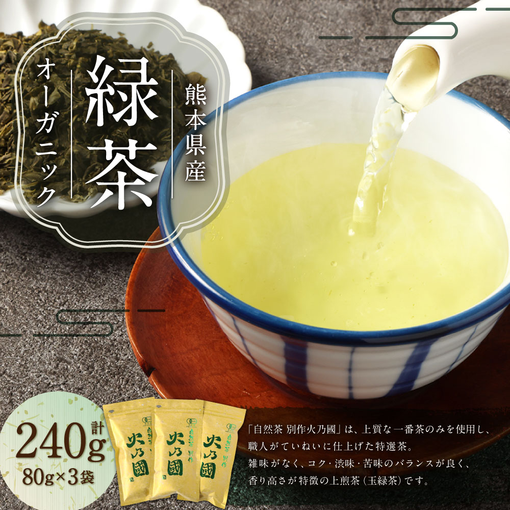 - 【ふるさと納税】熊本のオーガニック緑茶 3袋セット (合計240g) / オーガニック緑茶 有機緑茶 緑茶 お茶 茶 上煎茶 玉緑茶 飲料 飲み物 セット 九州 熊本県 相良村 送料無料