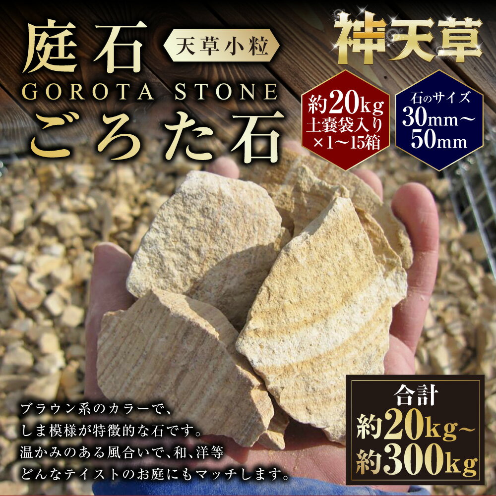 【ふるさと納税】<選べる容量> 庭石 ごろた石 天草小粒 (30mm~50mm) (約20kg (1箱) / 約60kg (約20kg × 3箱 ) / 約100kg (約20kg × 5箱) / 約300kg (約20kg × 15箱) ) / 庭 石 しま模様 天然石 ゴロタ ブラウン 天草石 熊本県 上天草市 送料無料