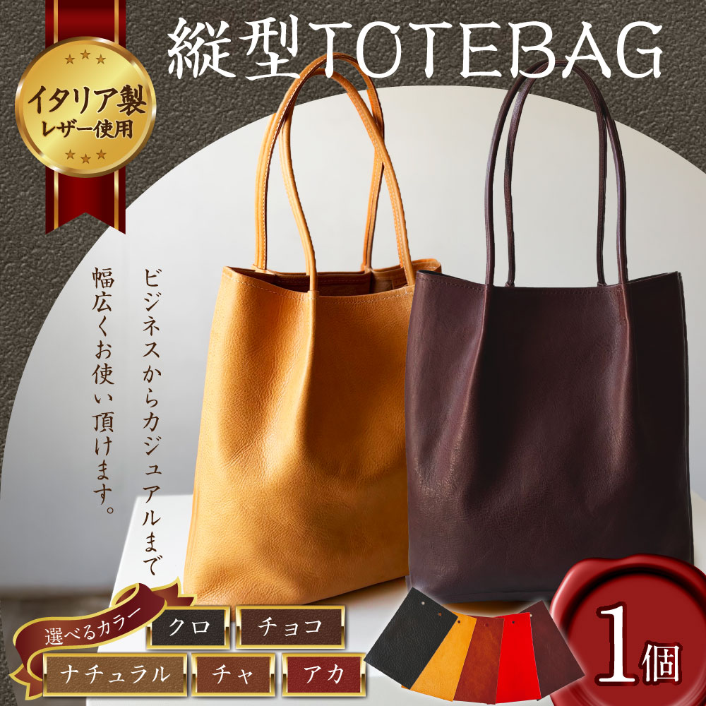 【ふるさと納税】〈選べるカラー〉 縦型 TOTEBAG クロ / チョコ / チャ / ナチュラル / アカ トートバッグ かばん バッグ イタリア製 牛革 トート レザー 本革 革 革製品 革鞄 革バッグ ベジタブルタンニンザー ビジネス カジュアル 福岡県 岡垣町 送料無料
