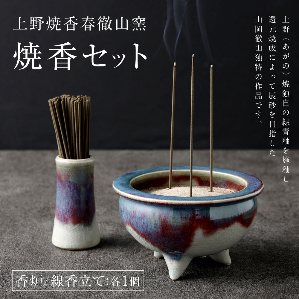 【ふるさと納税】【上野焼香春徹山窯】焼香セット(香炉・線香立て) 各1個 計2個 陶器 仏壇 仏具 お盆 お布施 お供え 供養 工芸品 日本製 福岡県 香春町 送料無料
