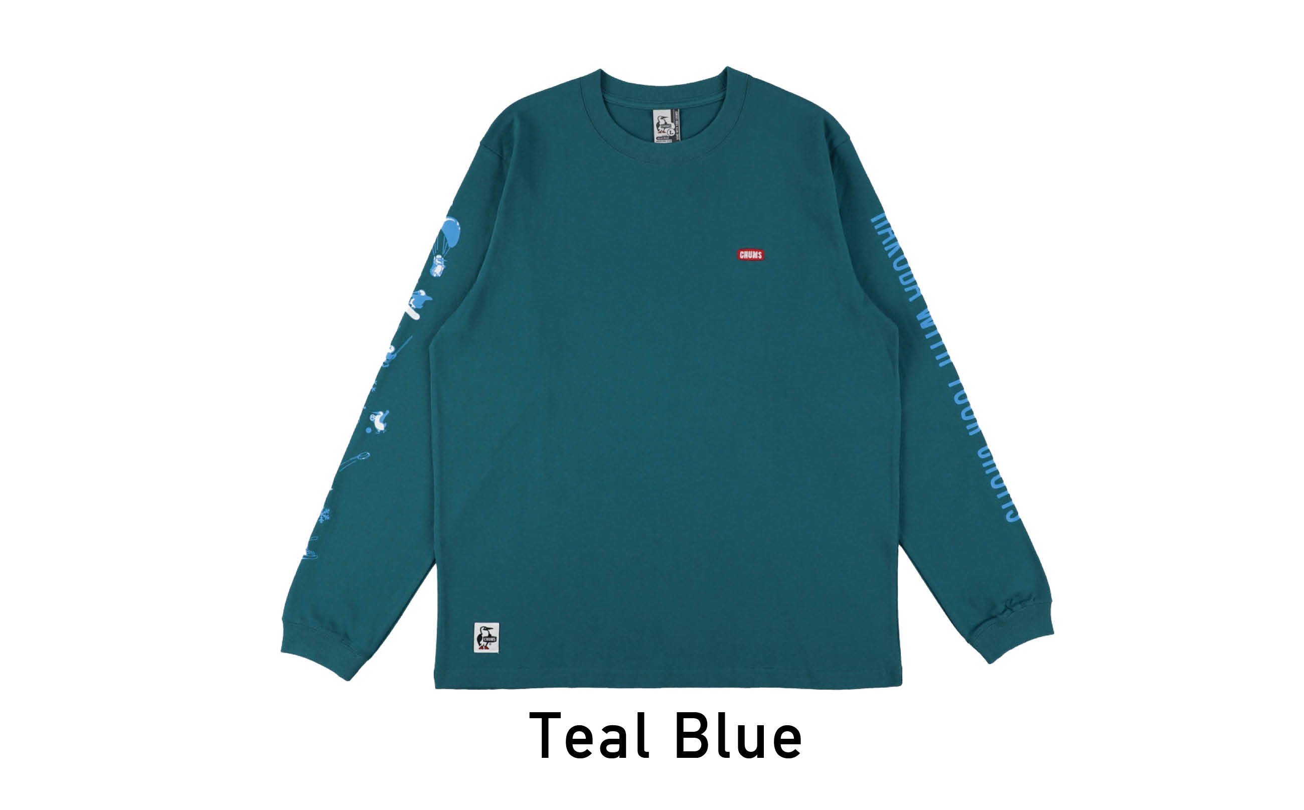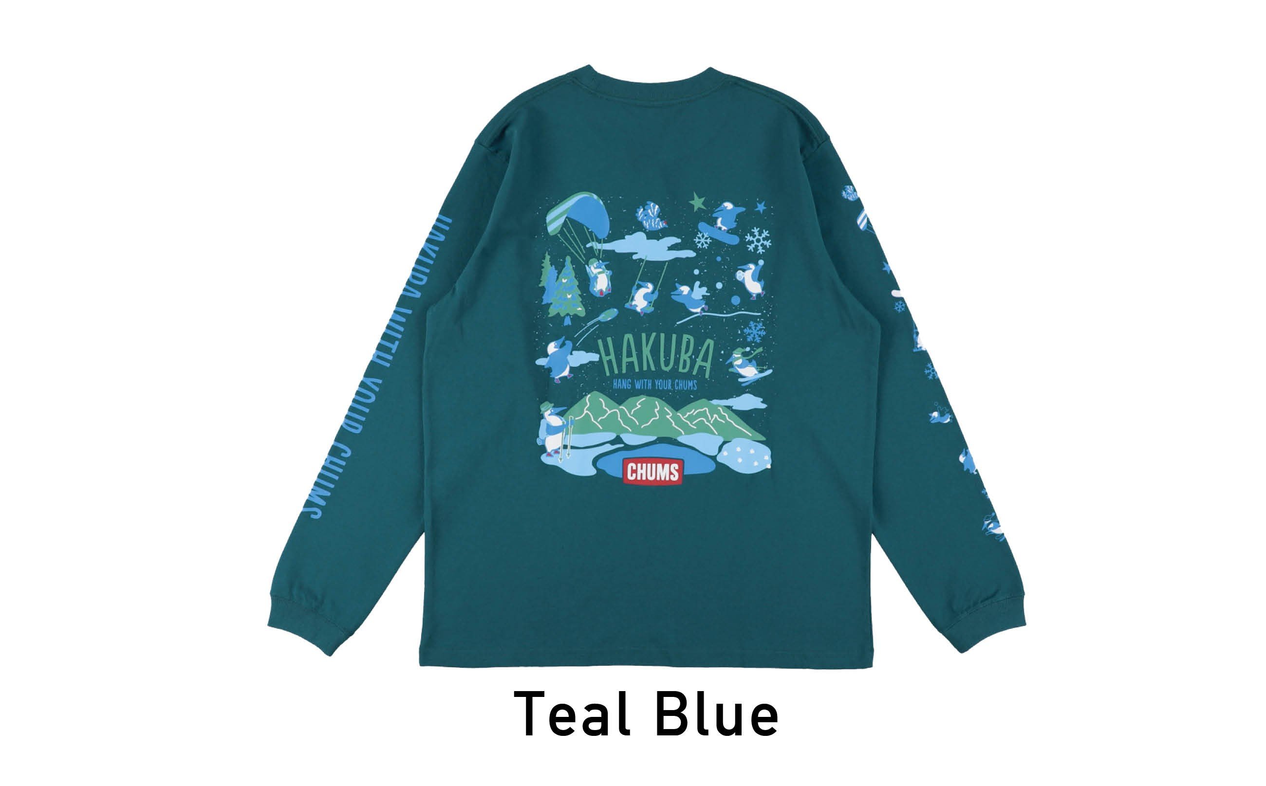 - CHUMS×HAKUBA Booby バックプリント 長袖Tシャツ / 長野県白馬村 長袖 ロンティー ロンT カットソー アウトドア スポーツ チャムス S M L XL XXL ブラック ホワイト ティールブルー【P0550662】