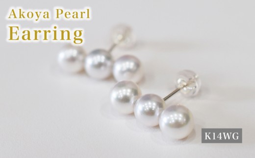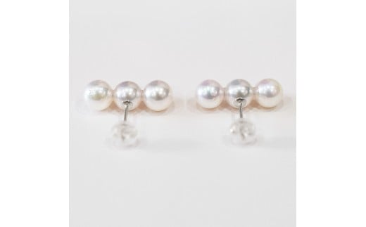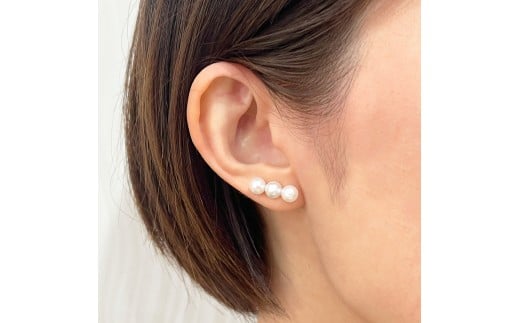 S085-583_あこや真珠 天草 ピアス 3連 6mm - 6.5mm ホワイトピンク 真珠 (B)