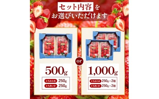 - 【1月発送】いちご とちおとめ・とちあいか 1000g 食べ比べ セット | 苺 イチゴ おいしい 甘い 人気 いちご日本一のまち 栃木県 真岡市 農林水産大臣賞最多受賞 ストロベリー 苺 人気品種 送料無料