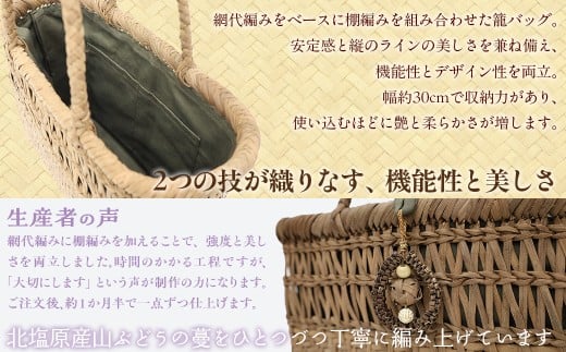 - 『籠バッグ』(幅約30cm)山ぶどう編み組細工 網代編み×棚編みの組合わせ 【 ふるさと納税 人気 おすすめ ランキング バッグ カゴ 籠バッグ バック ハンドバッグ レディース 山ぶどう編み 手作り 工芸品 福島県 北塩原村 送料無料 】 KBJ030