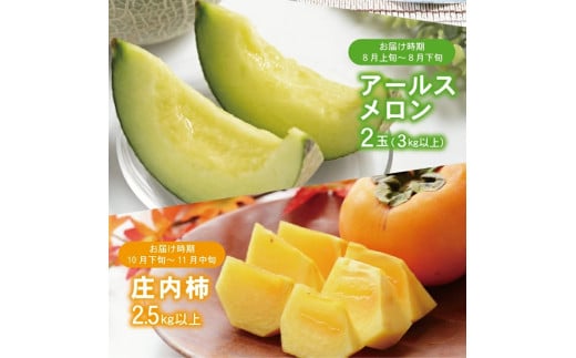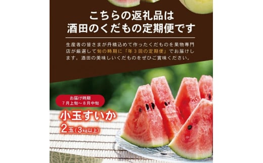- 【3回定期便】酒田の果物専門店厳選 くだもの定期便2026(小玉すいか、アールスメロン、庄内柿) SE0471