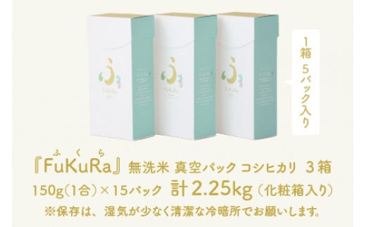- 【令和7年産】 無洗米 真空 パック こしひかり 1合 5パック × 3箱 『FuKuRa』 小浜市 / シマダ農園 [BFAV007]