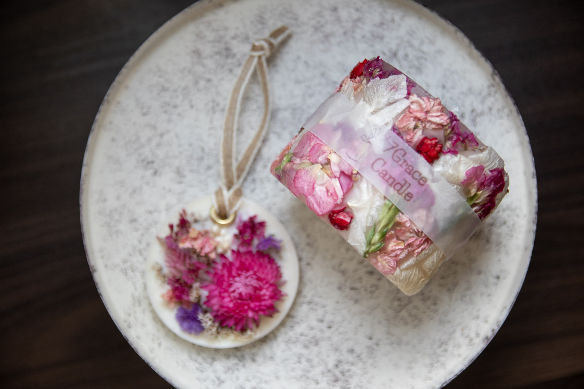 - NO1137 ボタニカルキャンドルとアロマサシェのセット ピンク / インテリア 雑貨 ドライフラワー ハンドメイド プレゼント ギフト