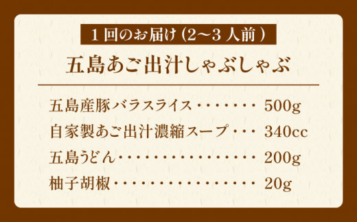 【6回定期便】五島あご出汁しゃぶしゃぶ2-3人前 (五島産豚バラ/あご出汁/〆のうどん/柚子胡椒) 五島市/NEWパンドラ[PAD011] 五島うどん 豚肉 出汁 鍋