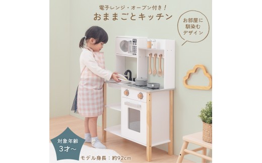 【完成品+設置付き】おままごとキッチン コンパクト(ホワイト×ナチュラル)おままごと 木製 キッチン キッチンセット おもちゃ 子供 ままごと おままごとセット コンパクト おもちゃ ごっこ遊び お店屋さんごっこ EKONTC001626-0-NA