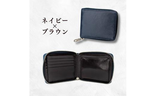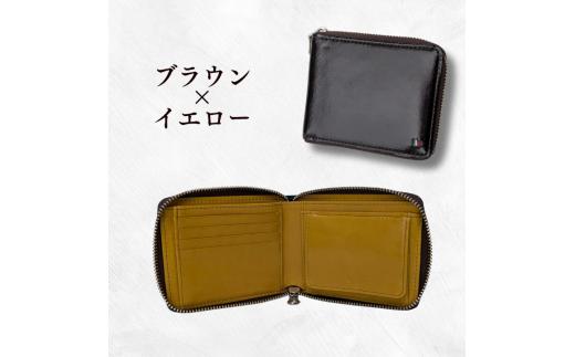 牛革 二つ折りファスナー財布 ステッチC(ブラウン×イエロー) / 財布 サイフ さいふ 二つ折り財布 イタリア 革 革製品 牛革 レザー 革小物 クラフト 送料無料