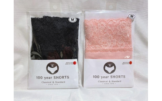 - 【ギフト用】百年ショーツ【黒×桃 2枚1組・Mサイズ 】 日本製栃木の工場直売 縫心オリジナル下着 百年変わらない究極のスタンダードショーツ【衣料 ファッション 人気 おすすめ 】