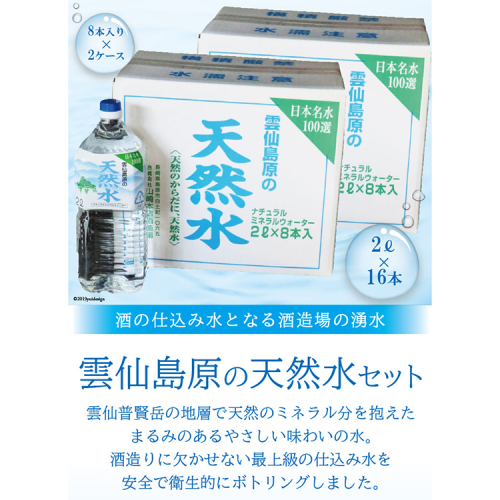 BD041 山崎本店酒造場 雲仙島原の天然水 2L 8本 2箱 計32L [ 水 2リットル 天然水 湧水 ペットボトル おいしい 名水百選 大容量 軟水 長崎県 島原市 ]