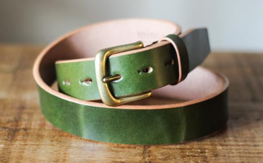 - 【minca】幅35mmベルト/32インチ 栃木レザーの希少な「ハーネスレザー」使用の贅沢な1枚革のレザーベルト/オリーブ/HL-B02/OLIVE/minca 571【小物 ファッション 人気 おすすめ 】