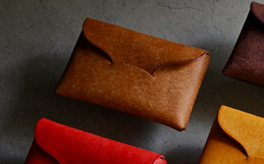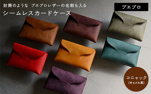 - 封筒のような プエブロレザーの名刺も入るシームレスカードケース 【コニャック (キャメル系)】 F5J-1034