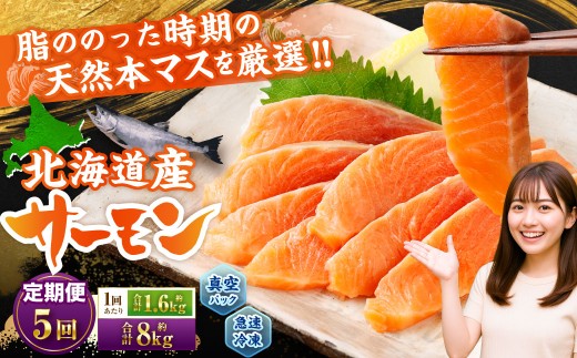 - 【5回定期便】 北海道産サーモン 計約8kg (約200g×8パック)×5回 サーモン 本マス マス 天然 新鮮 塩締め 急速凍結 小分け 冷凍