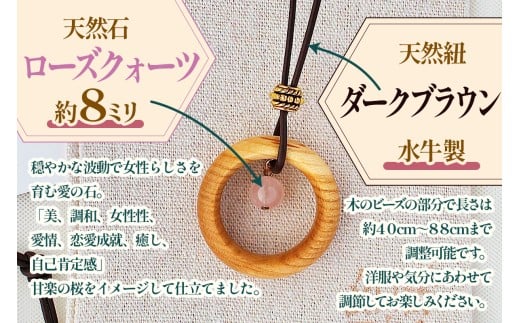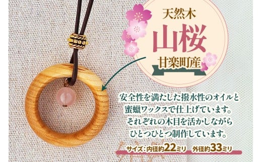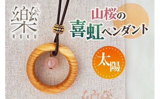 山桜の喜虹ペンダント (太陽)|ネックレス ペンダント アクセサリー 木工品 ハンドメイド ローズクォーツ 天然石 山桜 甘楽町 [0300]