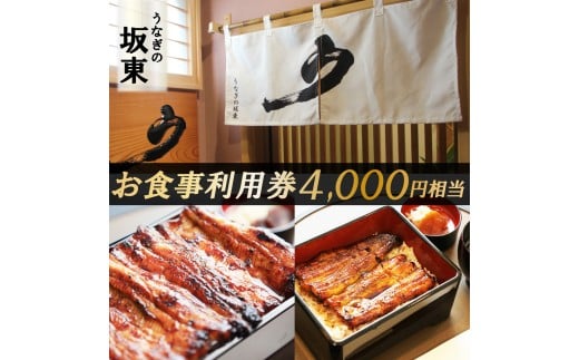 - うなぎの坂東 食事券 4,000円相当 うなぎ 蒲焼 チケット 体験 お食事