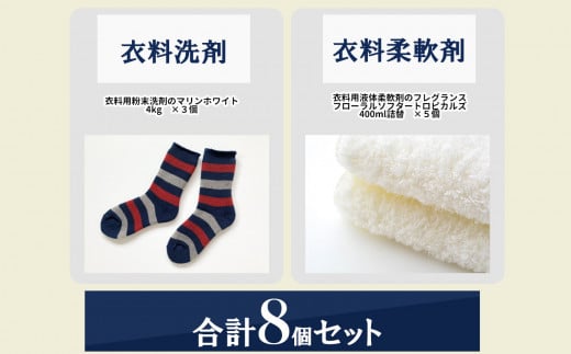 ランドリー 洗剤 柔軟剤 8個 セット | ランドリーセットC 洗濯 衣類用 粉末洗剤 液体柔軟剤 マリンホワイト まとめ買い 詰替 日用品 生活用品 防災 岐阜県 北方町
