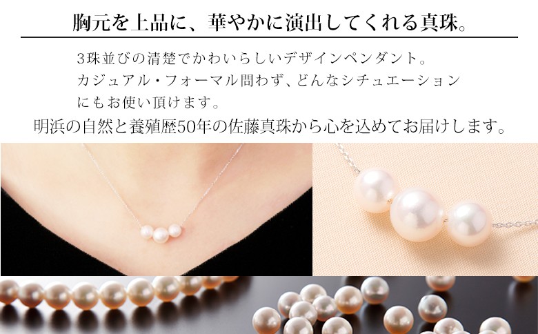 - 保証書付<明浜産真珠ペンダント・トロア(ホワイト)> 8.0~8.5mm 純国産 高品質 アコヤ真珠 宇和海 パール あこや ネックレス アクセサリー レディース 女性 誕生日 記念日 成人祝い 佐藤真珠 愛媛県 西予市【常温】『最短10営業日以内に順次発送予定』