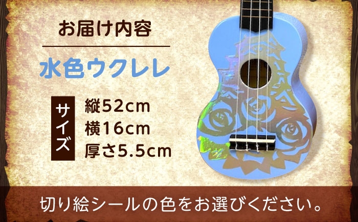 - ウクレレ 【シールカラー選択可】ばらのウクレレ水色 バラ 薔薇 切り絵 アート 音楽 楽器 記念 ギフト 福山城 オリジナル 人気 おすすめ プレゼント 初心者 入門 ソプラノウクレレ 日本製 国産 ミュージック 弦楽器 ハワイ 南国 趣味 バンド アート インテリア お洒落 おしゃれ アート作品 デザイン ユニーク 個性的 派手 広島 福山市/有限会社ムジカ [BAFH011]