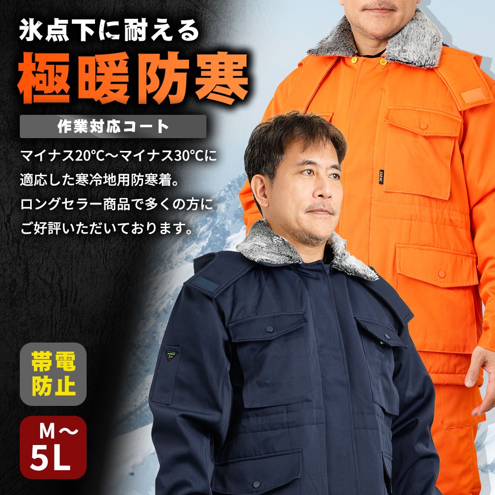- No.1033 【-30℃に耐える】冷凍倉庫用防寒コート7300 オレンジ / ロングセラー商品 高級 中綿シンサレート 保温性 フード 起毛 暖かい 広島県