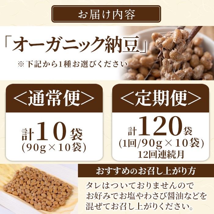 - K-599 <選べる発送>国産!有機JAS認定・オーガニック納豆(計10袋・計120袋)【お多福たまご】霧島市 自然栽培 大豆 納豆 朝食