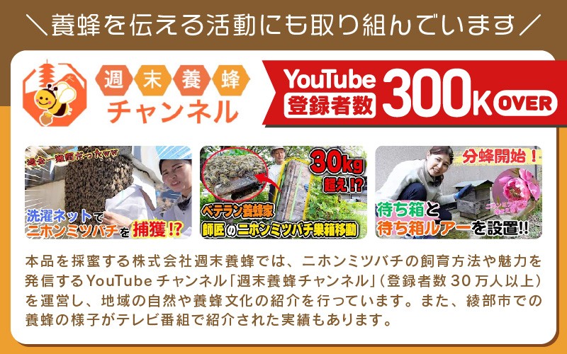 - ニホンミツバチのはちみつ 選べる容量・回数 300g×1~4本 定期便3~12回 | 京都産 非加熱 国産 百花蜜 自然のままの純粋蜂蜜 はちみつ ハチミツ 蜂蜜 ハニー 瓶詰 (週末養蜂)