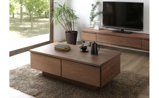 【大川家具】無垢材 センターテーブル ローテーブル 食卓テーブル ちゃぶ台 リビングテーブル 凛 幅1000 ウォールナット 引き出し付 おしゃれ 収納 天然木 組み立て不要 高級感 【設置付き】