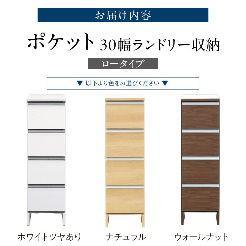 - ランドリー収納 【ポケット 30 LO】_ランドリー収納 ポケット 30 LO 大川家具 収納 完成品 お手入れ 簡単 機能性抜群 引出 スライドレール 洗濯物 洗面所 隙間収納 お洒落 日本製 お取り寄せ 福岡県 久留米市 送料無料_Qd083