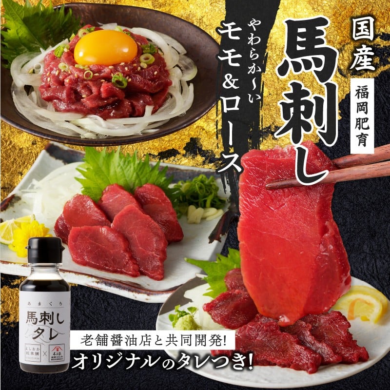 【馬刺し】 新鮮こだわり国産馬刺し【馬刺しタレ付き】福岡県産《モモ・ロース》(モモ100g×1P・2P・5P・7P/ロース100g×1P・2P・3P・5P)_福岡県産 国産 馬刺し セット 計 200g 400g 800g 1200g モモ ロース 赤身 新鮮 こだわり たれ100ml 生食用 真空包装 タレ付き 肉 馬肉 おつまみ 久留米市 冷凍 食べ比べ お取り寄せグルメ 送料無料