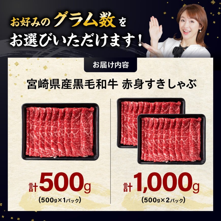 - ※発送月・内容量が選べる※ 生産者応援!宮崎県産黒毛和牛赤身すきしゃぶ500g~1000g 【 数量限定 牛肉 牛 肉 すき焼き すきやき しゃぶしゃぶ スライス 】
