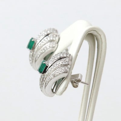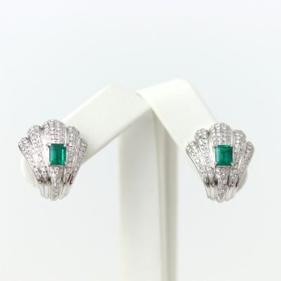 - K18WGエメラルド0.40ct×0.38ctピアスG2008【1373682】