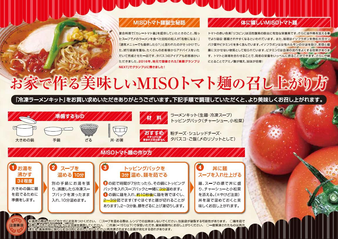 - MISOトマト麺 4食セット スープ 具材付き 【食品 味噌 とまと ラーメン 拉麺 麺 セット トマト まろやか イタリアン 材料付き 岐阜県 可児市 】