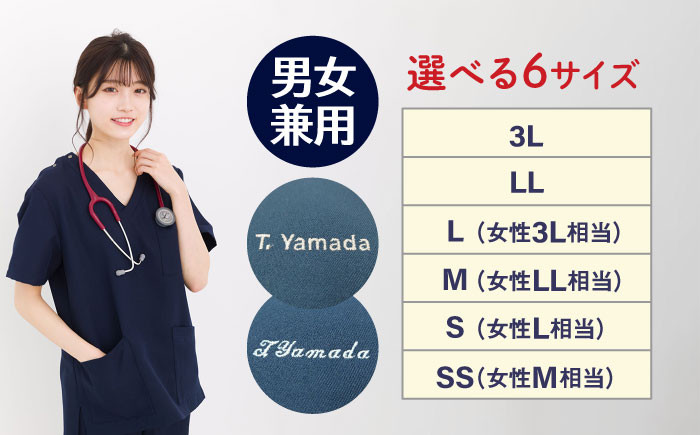 - 医療用着衣スクラブ半袖 ディープネイビー 仕事着 病院 刺繍 名入れ可 岐阜市/ビゼン [ANBW001]