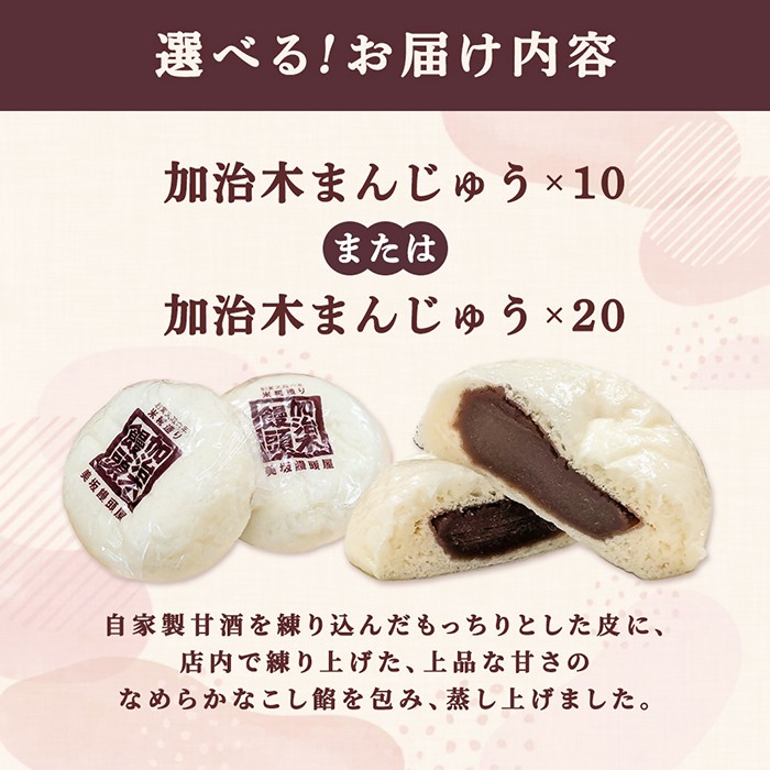 - a1049 《選べる個数》1823年創業「美坂屋」 加治木まんじゅうセット(10個・20個)【姶良市特産品協会】姶良市 酒まんじゅう 和菓子 まんじゅう 饅頭 加治木饅頭 手づくり お菓子 おやつ スイーツ デザート お茶請け お茶菓子 郷土菓子