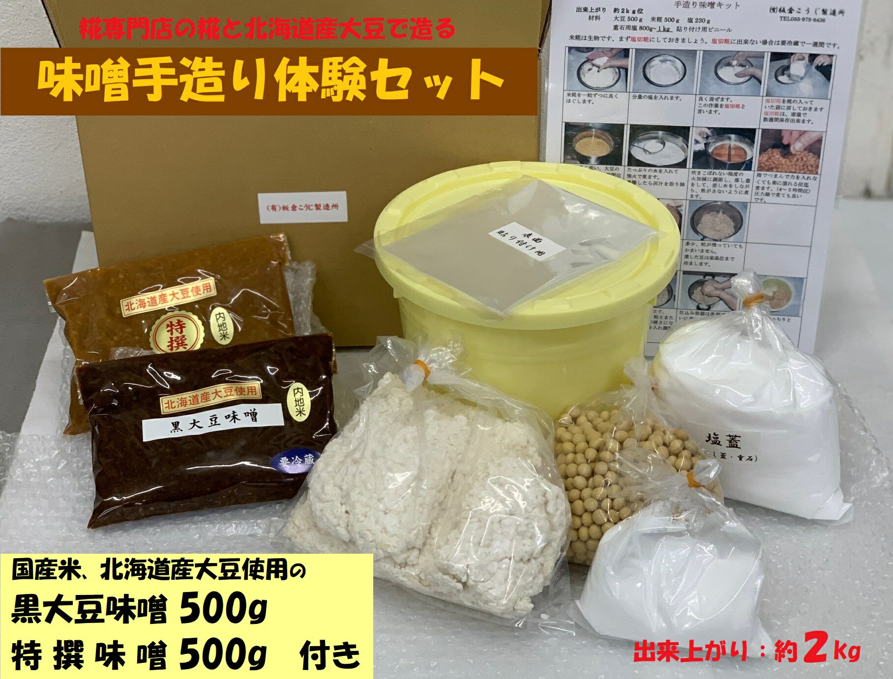 - 【ふるさと納税】糀専門店の味噌手造り体験セット+黒大豆味噌・特撰味噌