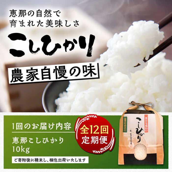 - 【ふるさと納税】【12回定期便】 こしひかり 白米 10kg×12ヵ月 恵那 / 米 こめ コメ 白米 精米 こしひかり コシヒカリ おこめ お米 産地直送 おすすめ 人気 恵那市産 ブランド米 おにぎり お弁当 炊き込みご飯 /恵那市/おこめのささき[AUAT007]