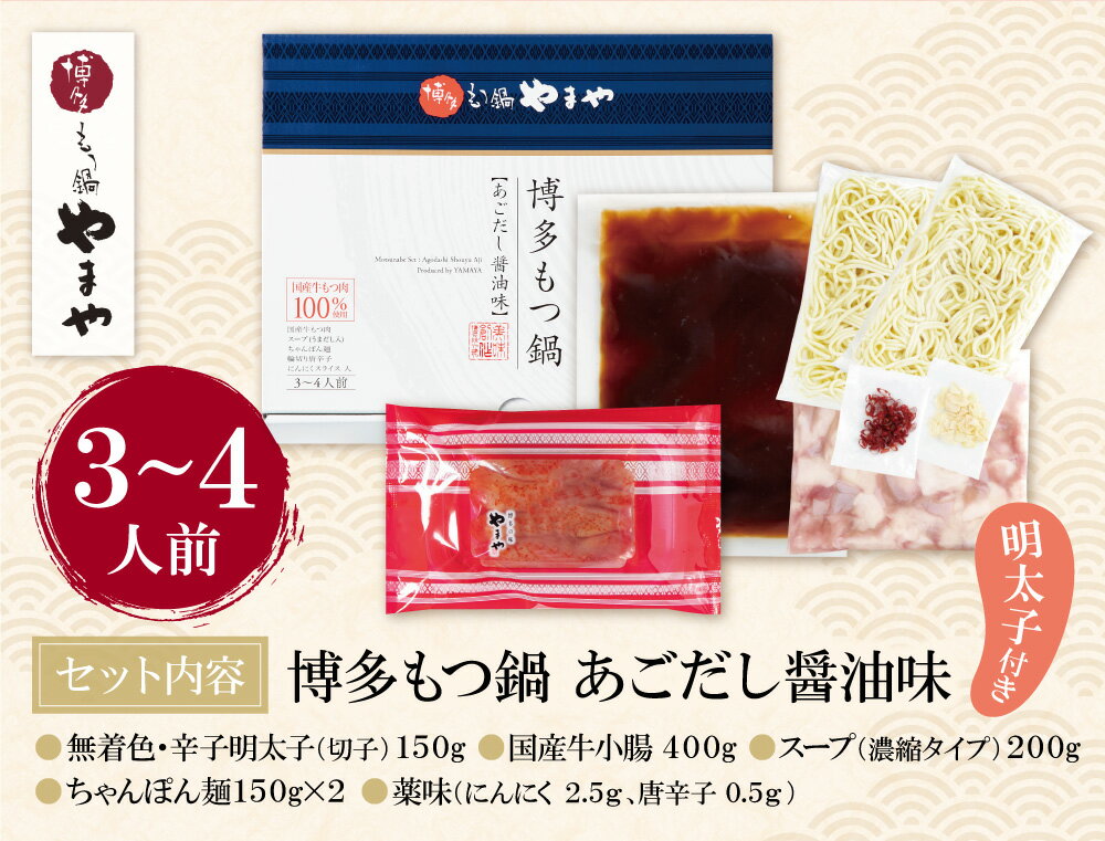 【ふるさと納税】 レビューキャンペーン 明太子付き・博多もつ鍋(あごだし醤油味)3〜4人前