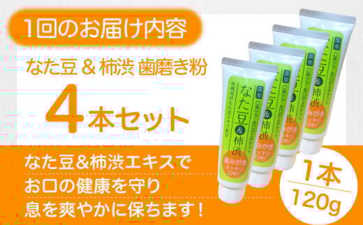 歯磨き粉 【全6回定期便】自然由来成分でお口スッキリ!なた豆&柿渋 歯磨き粉 120g×4本セット 定期便 なた豆 柿渋 和漢 自然由来成分 ハミガキ 4本 歯周病予防 むし歯予防 ネバつき 継続 習慣 愛媛県大洲市/サンユー商店 [AGCS007] 歯磨き粉 歯ブラシ 舌磨き ホワイトニング 歯周病 ジェル 口臭予防 オーラルケア おすすめ 人気 お取り寄せ 送料無料 贈答 ギフト