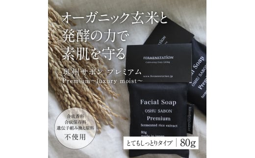 【12月15日で受付終了】 洗顔石けん 奥州サボンプレミアム とてもしっとりタイプ 80g 玄米 米ぬか 麹 酵母 美容 ホホバオイル 無添加 泡 お風呂 洗顔 [D0013]