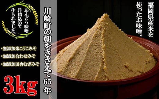 - 本格 生味噌 3kg セットみそ ミソ お味噌 味噌汁 夕食 惣菜 晩ごはん 調味料 調理 料理 便利 伝統 あんどう 本格 生みそ 3kgセット 味噌 コク 旨み 安心 安全 みそ汁 お味噌汁 豚汁 汁 国内産 国産 福岡 川崎町