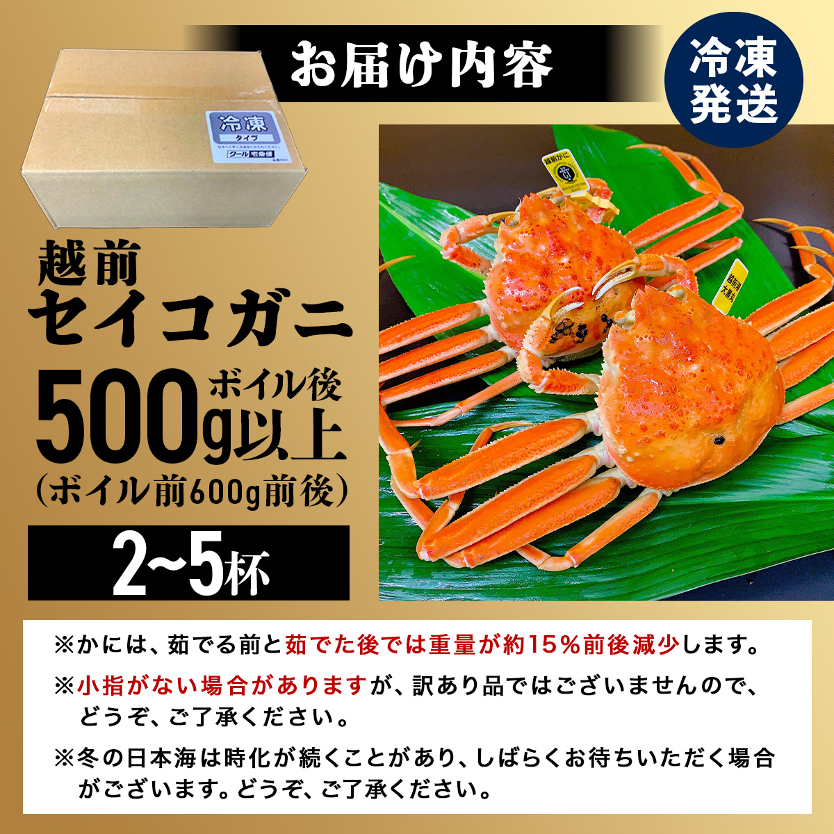 越前セイコガニ ボイル後500g以上 (ボイル前600g前後) 冷凍 お届け時期:11月10日以降順次発送【マイマルシェ 敦賀 越前蟹 カニ 蟹 セイコガニ 海鮮 かに鍋 かにしゃぶ NEW 新規】[090-a017]