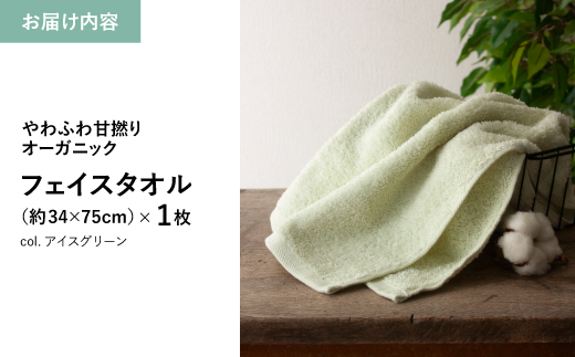 やわふわ甘撚りオーガニック フェイスタオル(アイスグリーン×1枚) 【m100-22-1P-B】【トクダ】