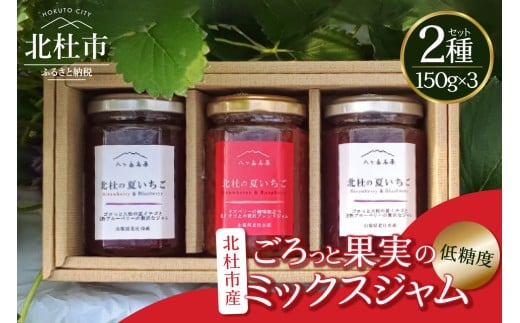 - 北杜の夏いちごジャム 3本セット ジャム ミックスジャム いちごジャム ラズベリージャム ブルーベリージャム セット プレザーブ 低糖度 夏イチゴ ラズベリー ブルーベリー 山梨県 北杜市産