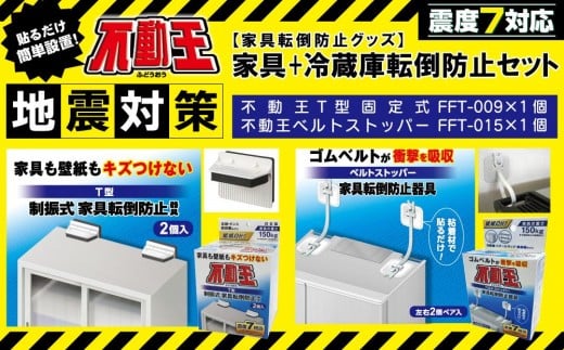 - 家具+冷蔵庫転倒防止セット(家具用T型固定式、家具用ベルトストッパー) 不動王 家具転倒防止【防災 防災グッズ 人気 おすすめ 】