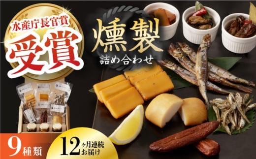 - 【全12回定期便】燻製専門店 9種 詰め合わせ ( いりこ / チーズ / ししゃも / たらこ / すり身 / オリーブオイル漬け ) 長与町/燻製工房 熏助 [EAQ012] 薫製 燻製 くんせい おつまみ 詰合せ 詰め合わせ セット スモーク 長崎県 チーズ ちーず 牡蠣 定期便 定期