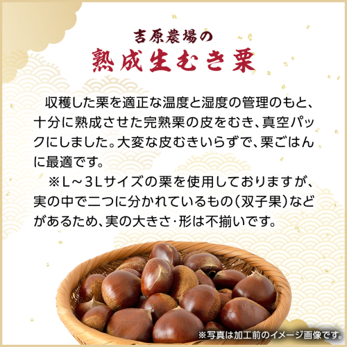 - 《 先行予約 》 【 吉原農場 の 完熟栗 】 熟成 生むき栗 ( 120g × 3袋 ) 完熟 栗 くり クリ 栗ごはん 果物 フルーツ 贈答 ギフト 旬 秋の味覚 秋 冬 正月 おせち 《 2025年10月下旬発送開始 》 [FC003sa]