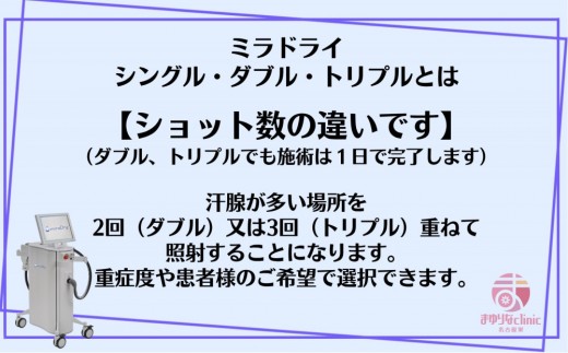 - 【切らないワキガ治療】ミラドライ(両脇)【ダブル照射】 広範囲照射