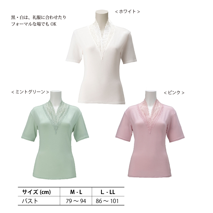 カットソー インナー 半袖 Vネック 1着 ブラック 選べる サイズ M-L L-LL トップス 衣類 肌着 レディース ジャケット イン 黒 黒色 礼服 仕事着 オフィス カジュアル エレガント フォーマル 母の日ギフト 母の日 ビレーヌ 美・REINE 滋賀 彦根